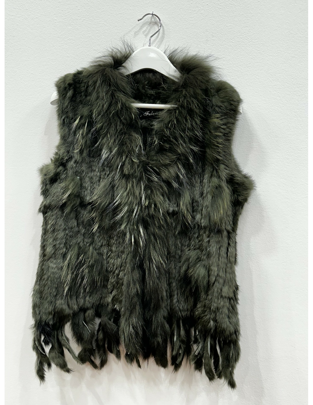 Chaleco en tonos verde, piel de conejo y marmota, hechos en Italia