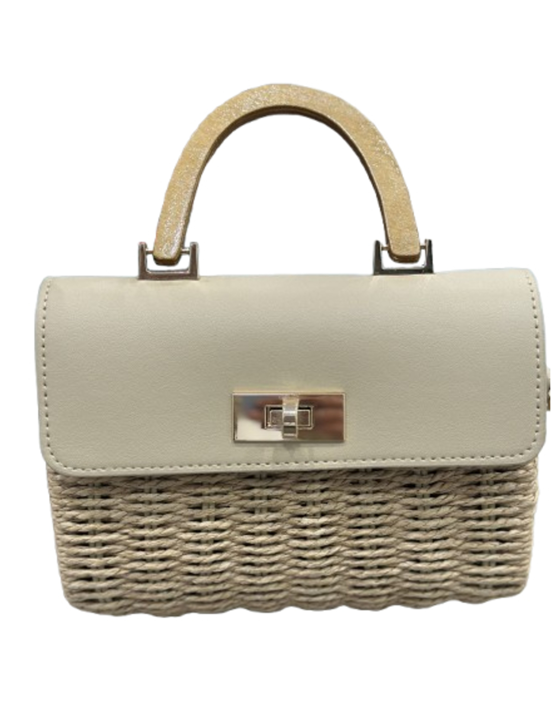 BOLSO MIME RAFIA, PIEL Y MADERA