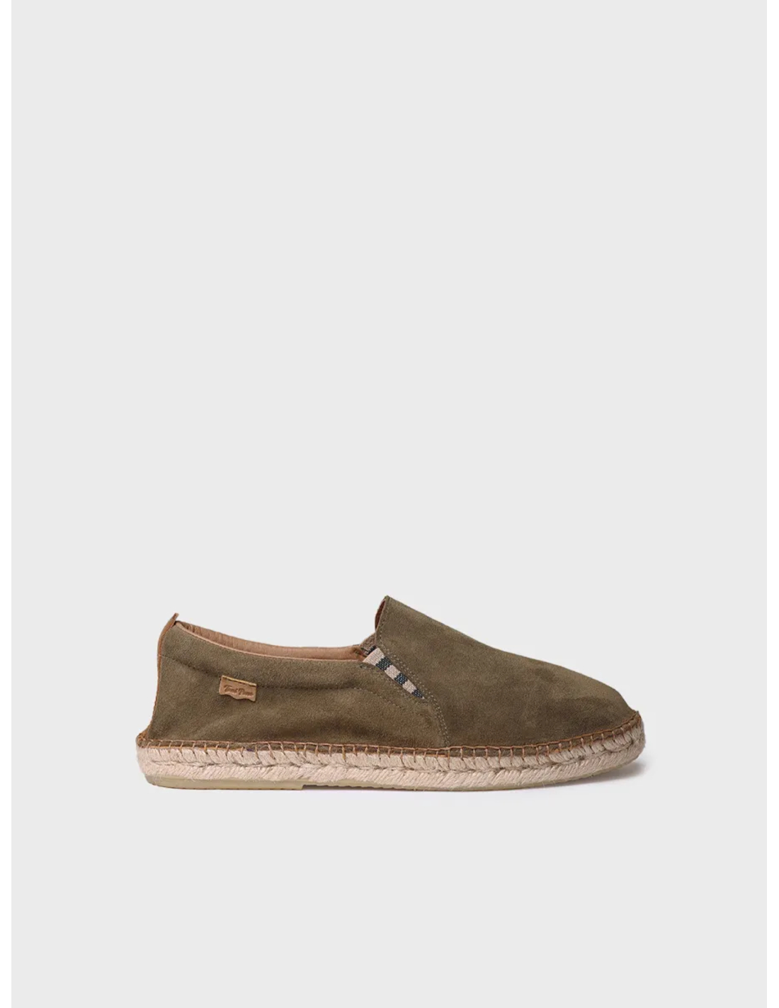 MARTI. Esta alpargata para hombre se elabora en serraje tonos lisos. La suela exterior es de yute. La base de la suela es de goma antideslizante y la plantilla interior está forrada en piel. Este diseño está cosido a mano en España. Las gomas laterales a rayas hacen que se adapte perfectamente al pie. Además, cuenta con un tirador trasero para facilitar su calce. Este modelo tiene la talla habitual, si estás entre dos tallas te recomendamos escoger la más grande.