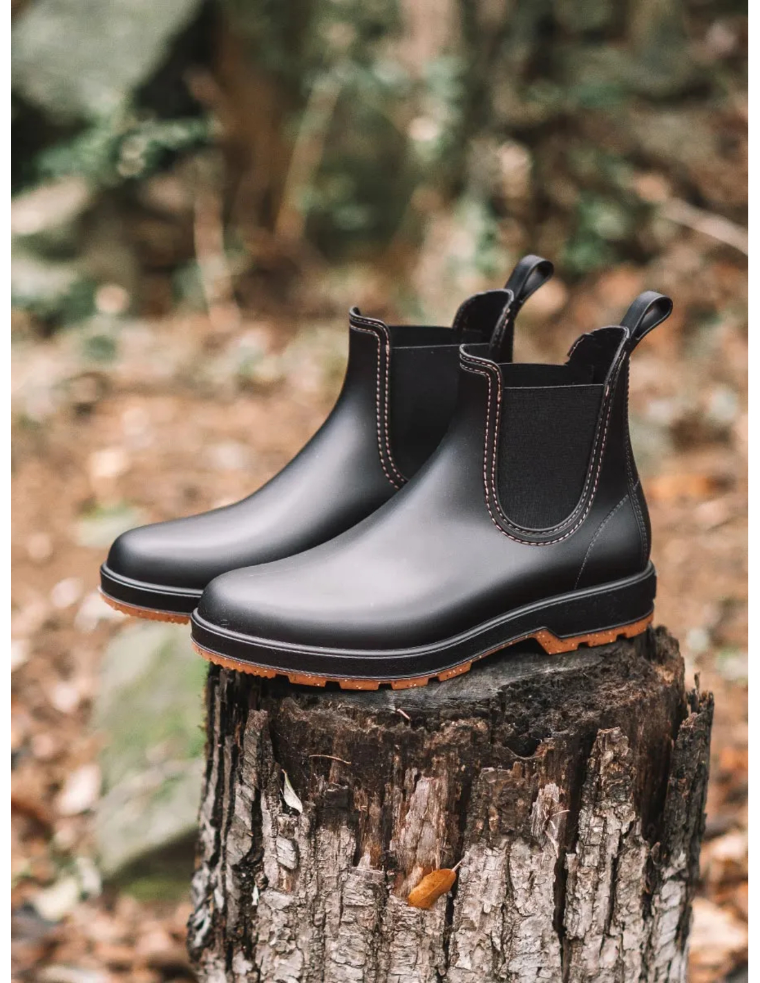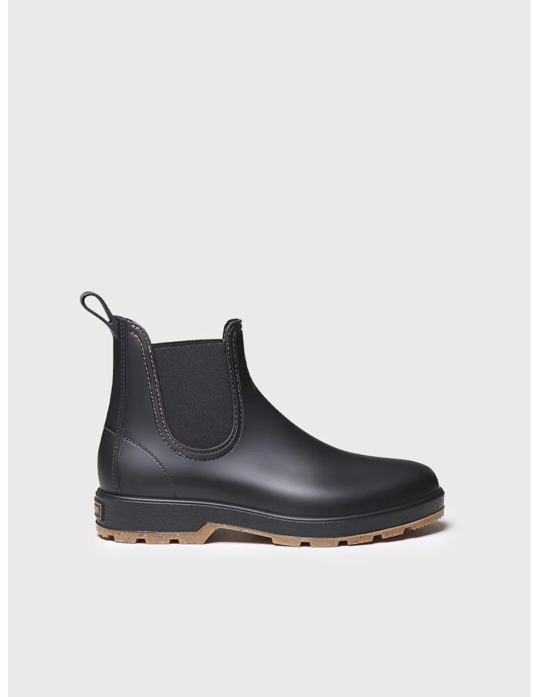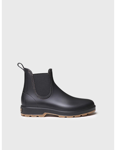 BURTON. Este botín de agua para hombre está hecho en goma. La plantilla interior está forrada en tejido para mayor confort. La suela tiene una altura total de 3,5 cm. Es un diseño elaborado en tonos lisos con acabado mate. Los elásticos laterales y la tira trasera facilitan su calce. La suela se elabora en color contrastado.
