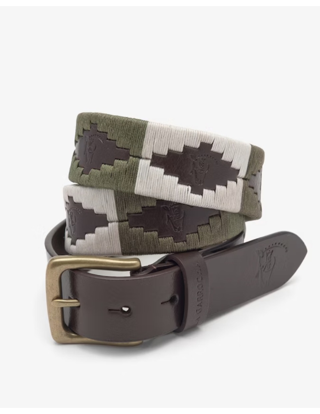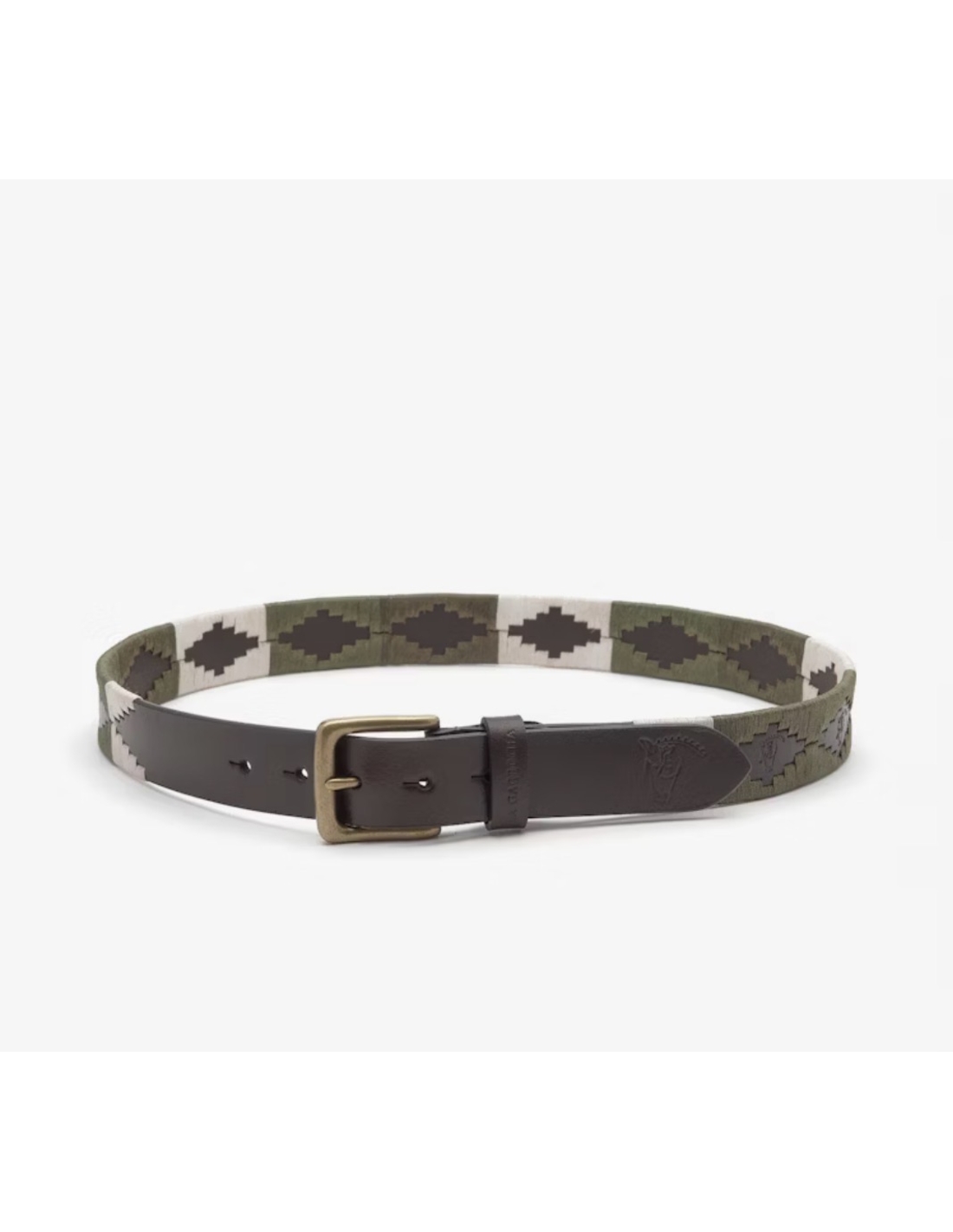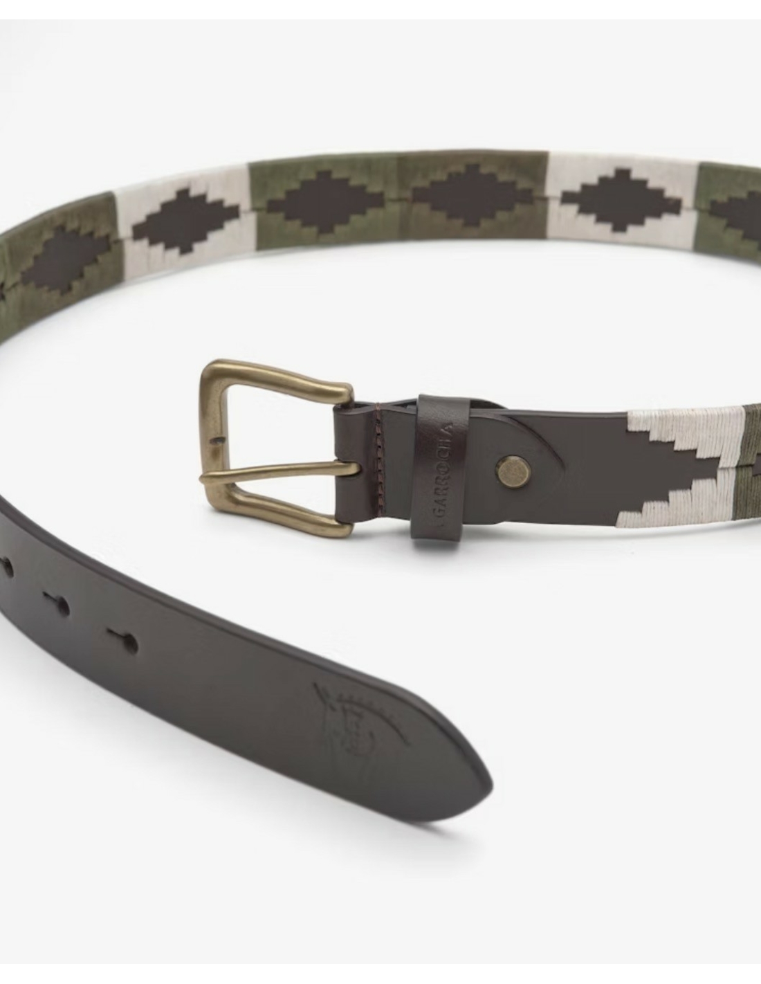 Cinturón argentino confeccionado en piel de vacuno de primera calidad. Bordado con cordel de algodón encerado. Cierre de hebilla metálica, pasador con grabado de La Garrocha y nuestro caballo grabado en el extremo.