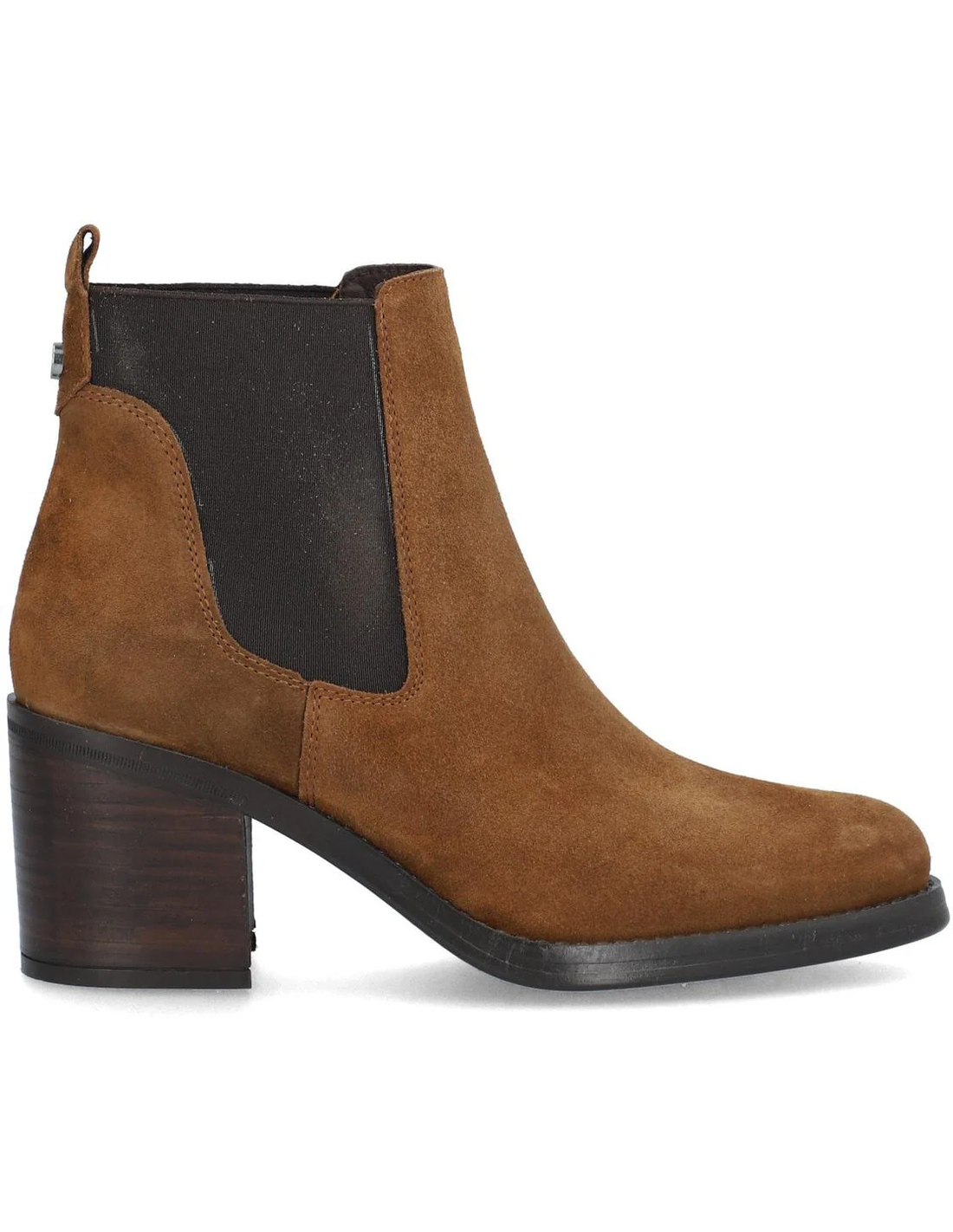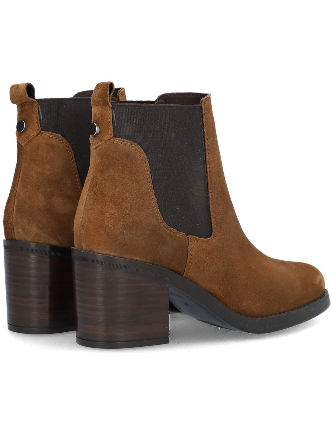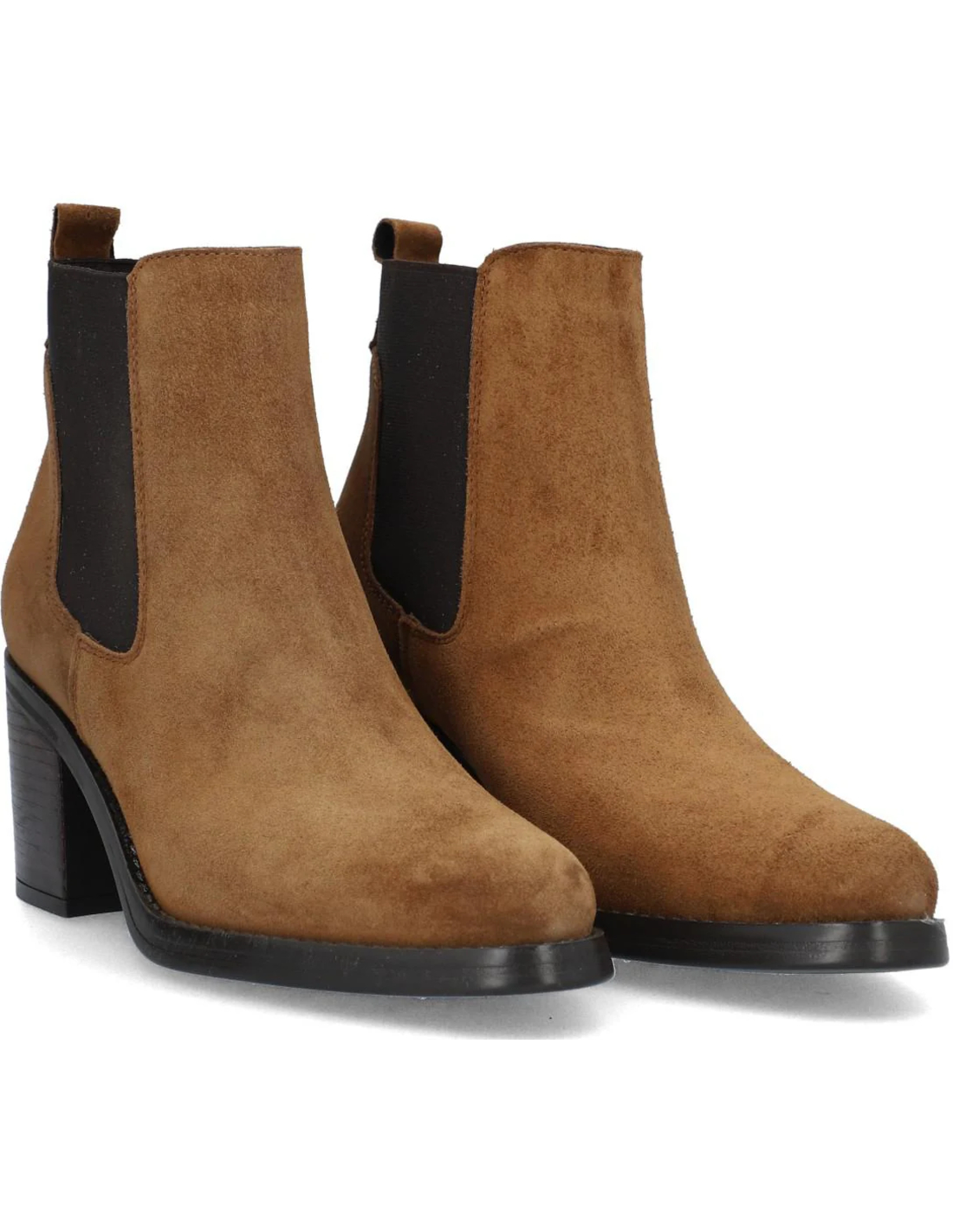 Botín para mujer ALPE LEYNA fabricado en piel ( baby silk) de color marrón con tacón de 7 cm, suela antideslizante y puntera redonda, sin cierre y caña baja. Composición exterior: piel. Composición interior: textil. Plantilla: textil