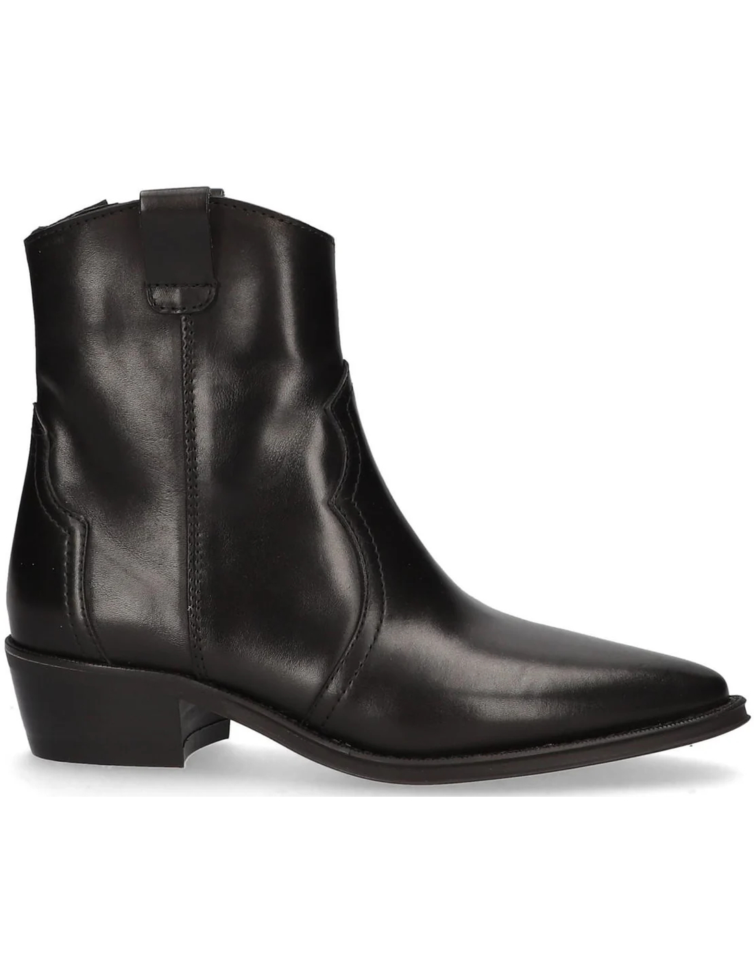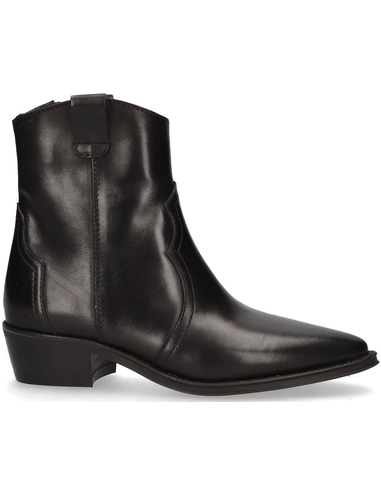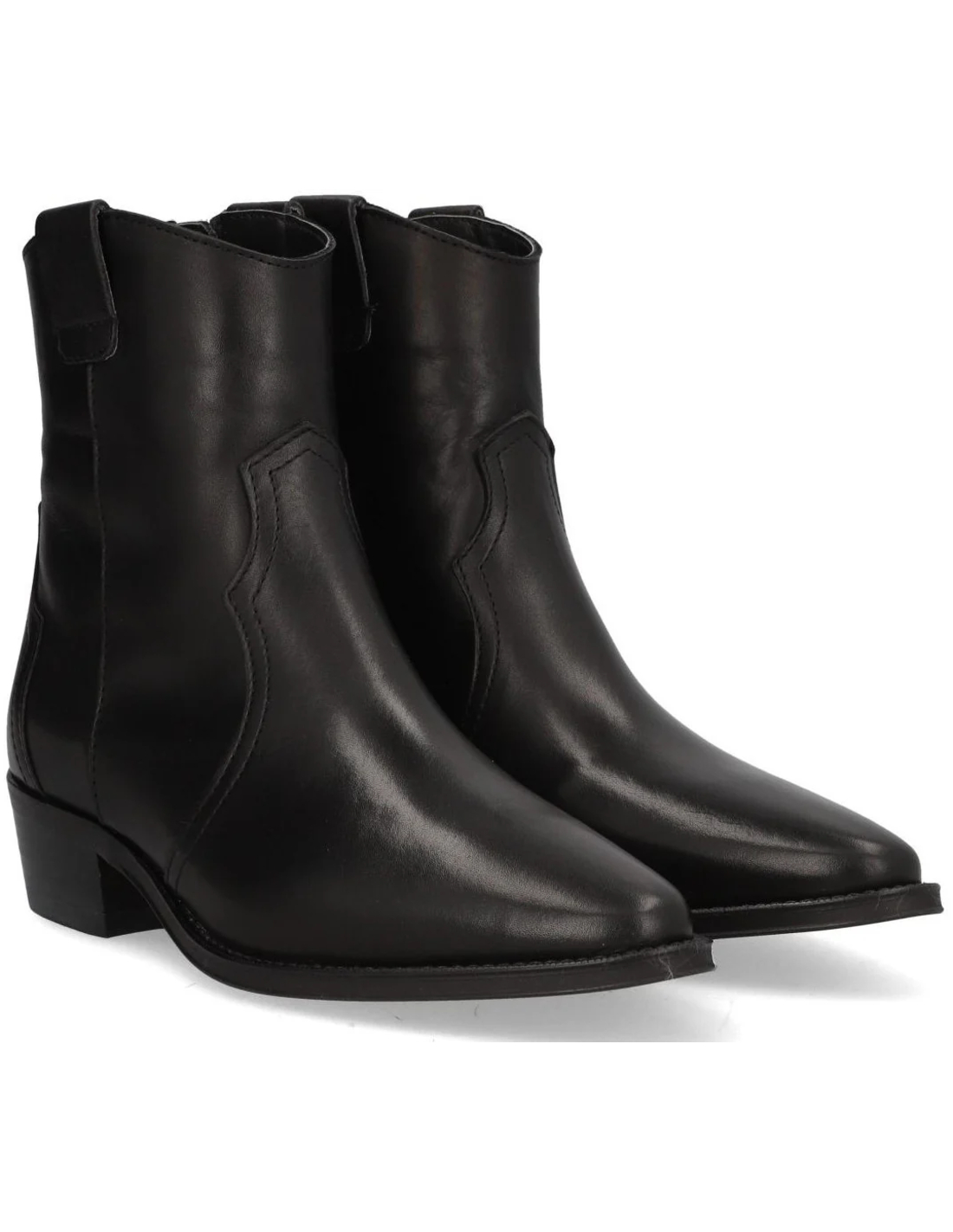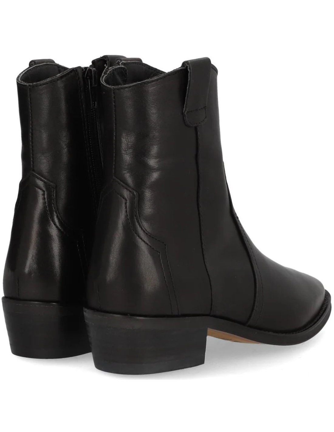 Botines para mujer ALPE CECILE de piel ( becerro) en color negro, tacón de 4 cm, suela antideslizante, puntera afilada, cierre con cremallera y caña baja.