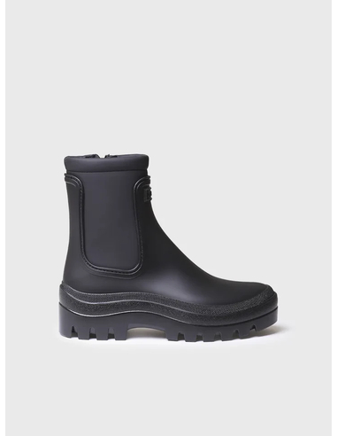 CASCAIS. Este botín de agua para mujer está elaborado en tejido efecto neopreno y goma monocolor. Se trata de la reinvención del clásico botín Chelsea en versión impermeable. Tiene una suela de plataforma con un diseño ondulado con una altura de 5 cm. La base de la suela es de goma antideslizante. La plantilla interior está forrada en tejido para mayor confort. Cuenta con una cremallera lateral para facilitar el calzado.