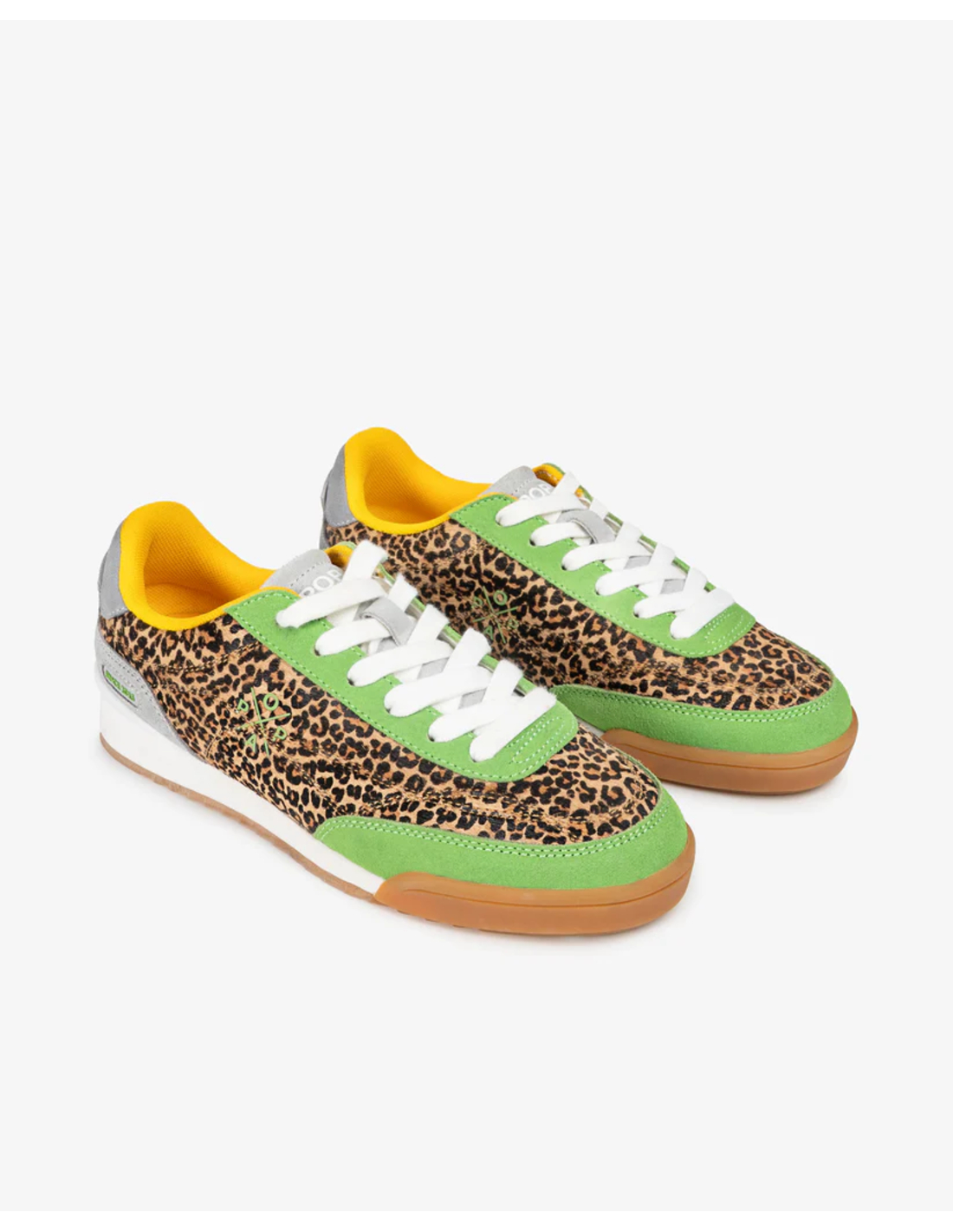 Sneakers con esencia retro. Combinan serraje y piel de pelo estampada en un diseño sencillo pero lleno de carácter. Su suela ligera y su tono verde las hacen muy combinables.