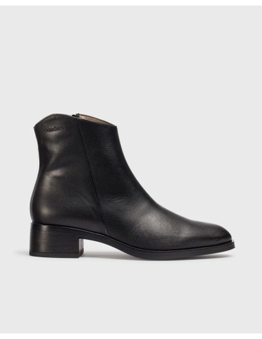 Botines BONJOUR 01 fabricados en piel lisa negra. Su estética limpia y atemporal lo convierte en un básico imprescindible para cualquier fondo de armario. De caña baja y punta redonda. Su cierre mediante cremallera lateral facilita el calce y asegura una sujeción cómoda durante todo el día. La plantilla interior de MemoryGel se adapta perfectamente al pie, proporcionando una comodidad excepcional en cada paso. Pruébalo ya!! #madewithloveinSpain Wonders apoya la fabricación responsable vía LEATHERWORKINGGROUP.