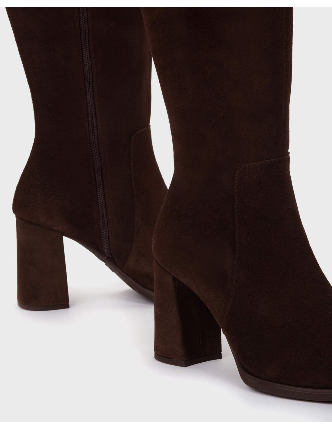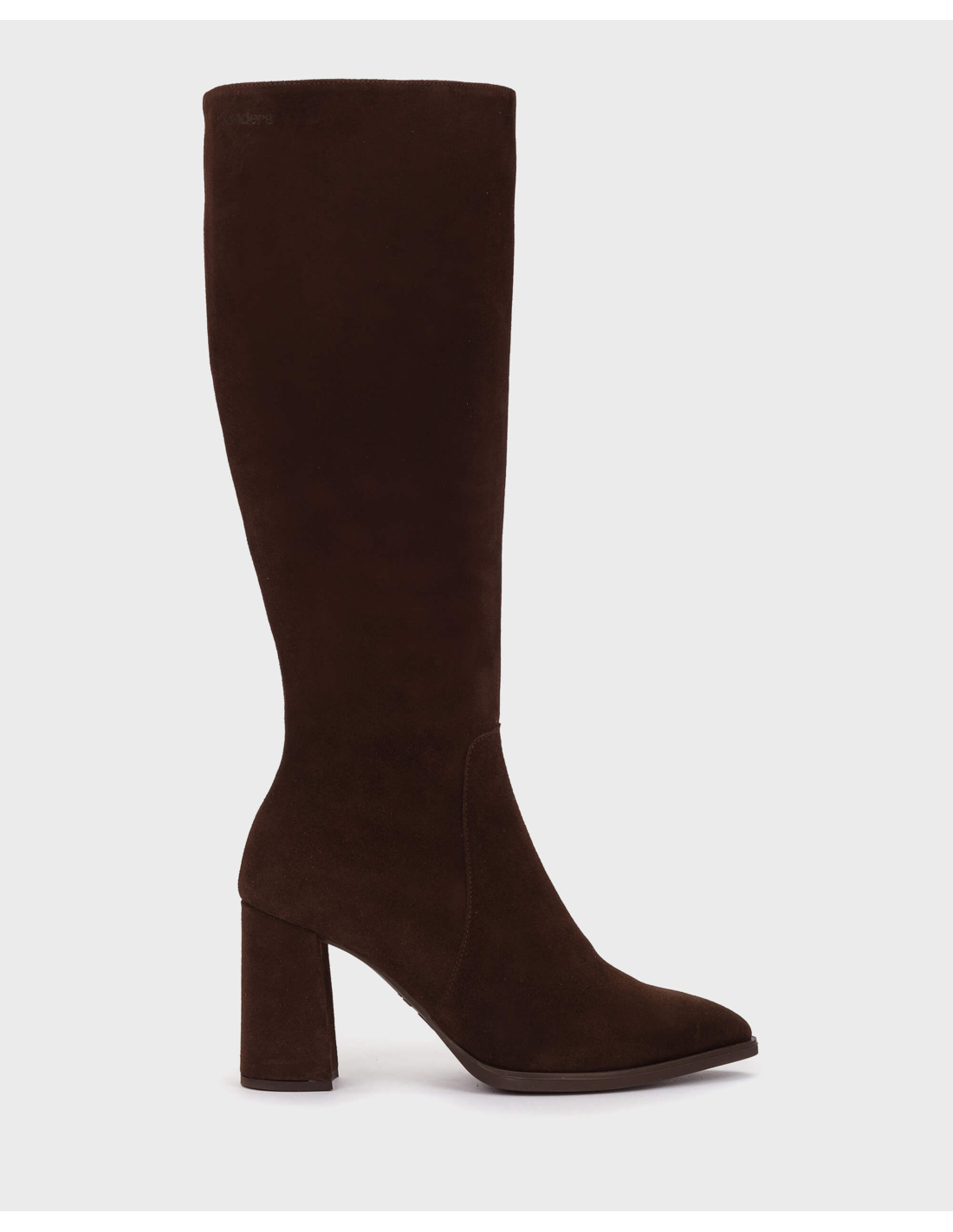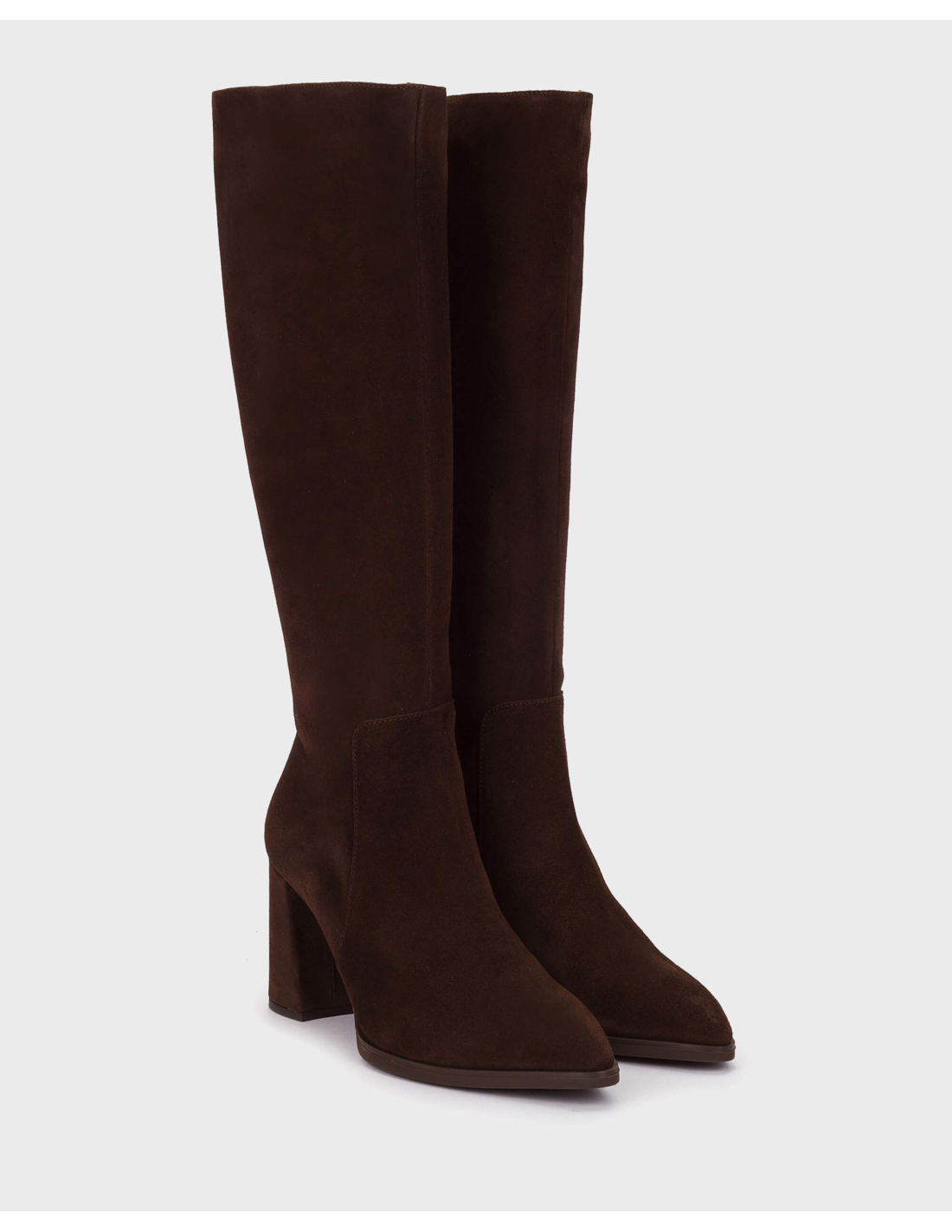 Botas AURORA 32 de tacón en piel serraje en color marrón, un modelo clásico, elegante y atemporal que combina estilo y comodidad. Fabricadas en piel lisa de alta calidad, presentan un diseño con punta afilada y tacón cuadrado que aporta estabilidad sin renunciar a la sofisticación. Su cierre con cremallera lateral permite un ajuste perfecto y fácil de poner. Su piso aporta un extra de comodidad, combinado con la plantilla interior de MemoryGel que asegura una pisada amortiguada. #madewithloveinSpain. Wonders apoya la fabricación responsable vía LEATHERWORKINGGROUP.