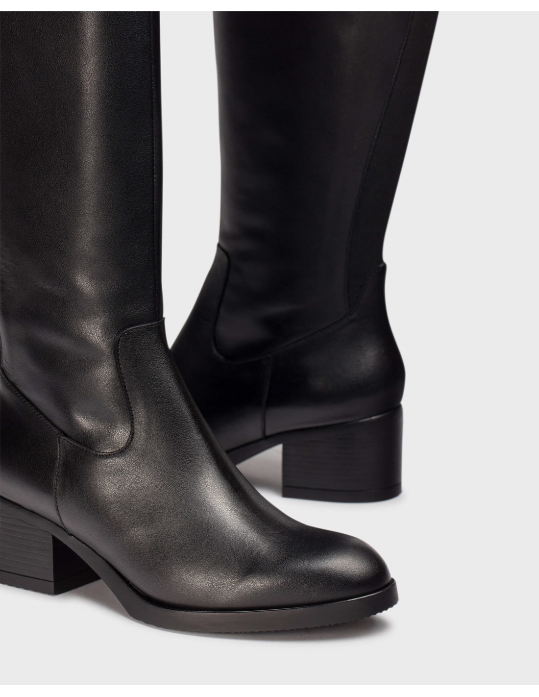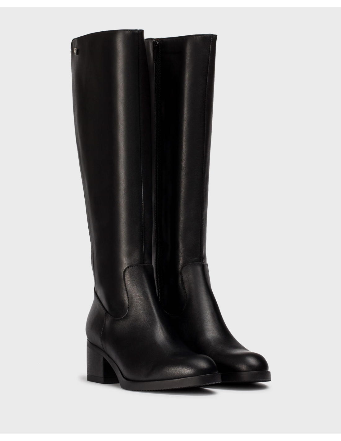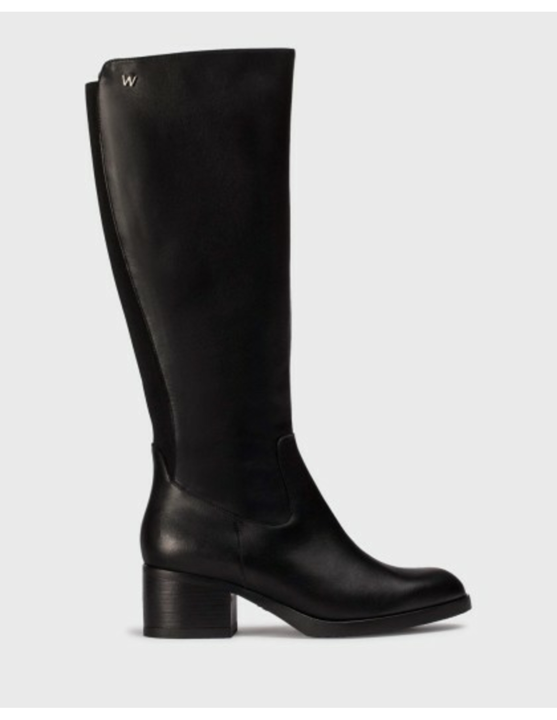 Botas SANTAFÉ 50 fabricadas en combinación de material textil y piel negra. Bota clásica estilo “riding boots”, con adorno metálico de “W” en el lateral exterior. La bota cuenta con un elástico trasero ancho que combinado con la cremallera lateral permiten un calce y ajuste perfectos. La plantilla interna de MemoryGel garantiza el máximo confort, amortiguando la pisada en cada paso. #madewithloveinSpain!! Wonders apoya la fabricación responsable vía LEATHERWORKINGGROUP.