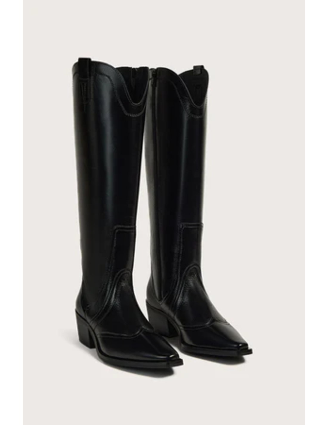 Bota de piel estilo campera, de caña alta con puntera cowboy con terminación recta. Apliques de piel bordados. Cierre lateral mediante cremallera.