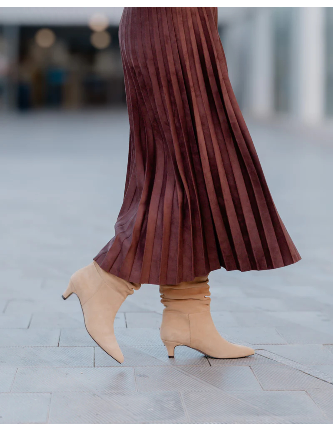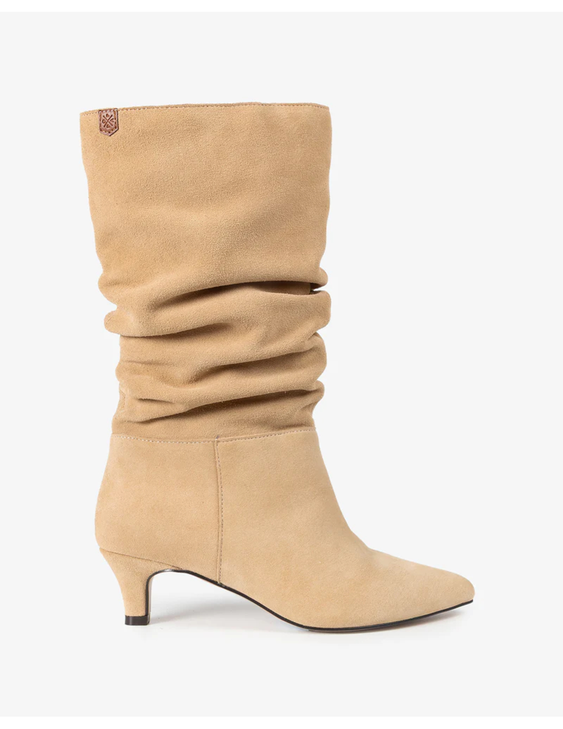Si te gustan las texturas suaves, esta bota de ante para mujer en marrón o arena es ideal. Combina con looks bohemios o neutros y se convertirá en tus botas boho chic favoritas.