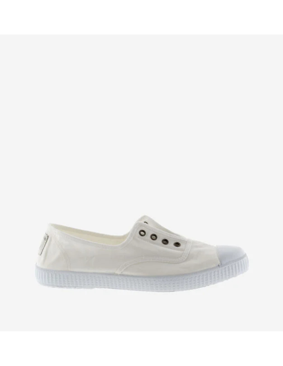 Zapatillas de lona sin cordón para mujer fabricadas en una combinación única de algodón reciclado DREC® (Dyeable Recycled Eco Cotton) y algodón ecológico cultivado, hilado y tejido en España.
