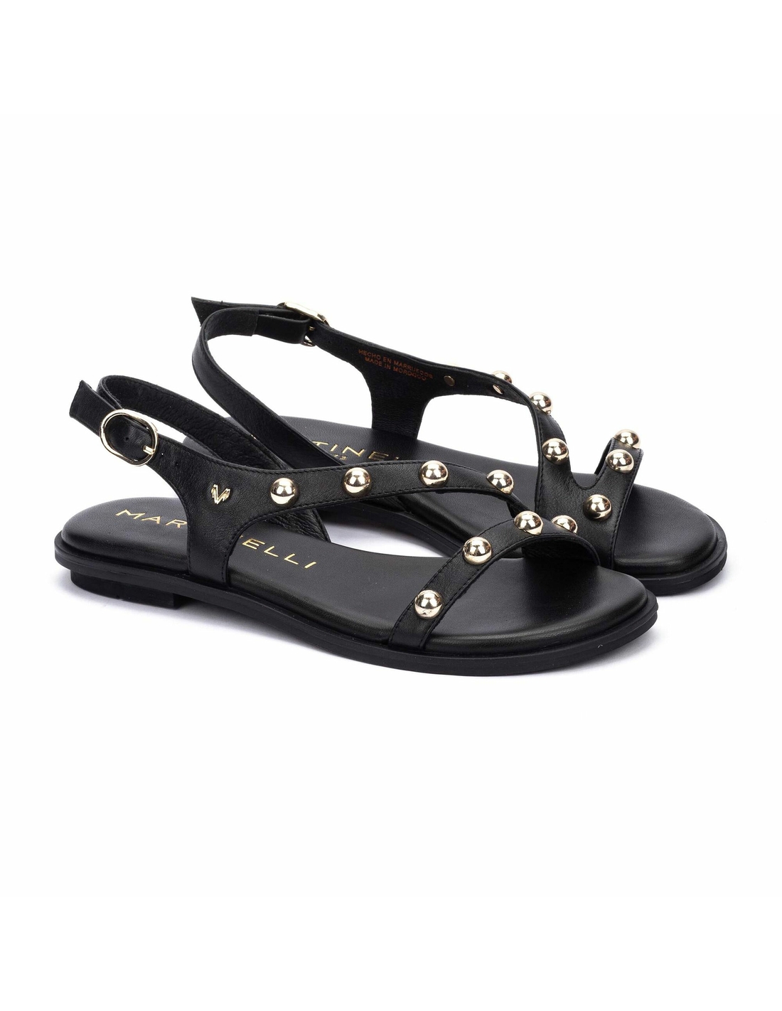 Siente la sofisticación con las sandalias planas Mazzini de Martinelli, confeccionadas en piel de alta calidad. Estas sandalias destacan por su elegante diseño, con una tira adornada con tachas que cruza el empeine, aportando un toque de estilo audaz y moderno. La suavidad de la piel, el piso de goma y su planta acolchada, garantizan una comodidad excepcional, haciendo que cada paso sea un placer. Perfectas para cualquier ocasión, las Mazzini son el complemento ideal para añadir un toque de distinción a tu look.