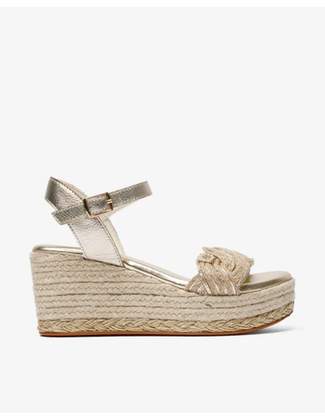 Alpargata de mujer estilo valenciana con pala cerrada en piel oro.